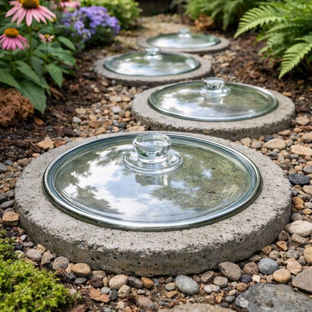10. Turn Glass Lids Into Garden Stepping Stones